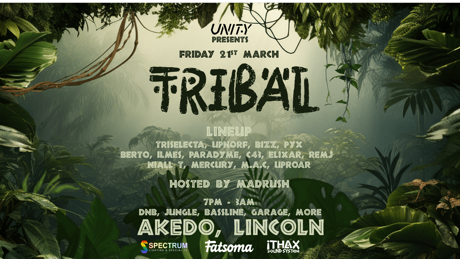 Unity is back! This time with a one-of-a-kind jungle themed rave experience! This time, we’re taking things even deeper into the wild—bigger beats, untamed energy, and a primal atmosphere like no other. Get ready to lose yourself in the rhythm as our killer lineup of local DJs keeps you moving all night long. Step into the jungle, embrace the tribal spirit, and let the music take over! 🌿🔥🎶