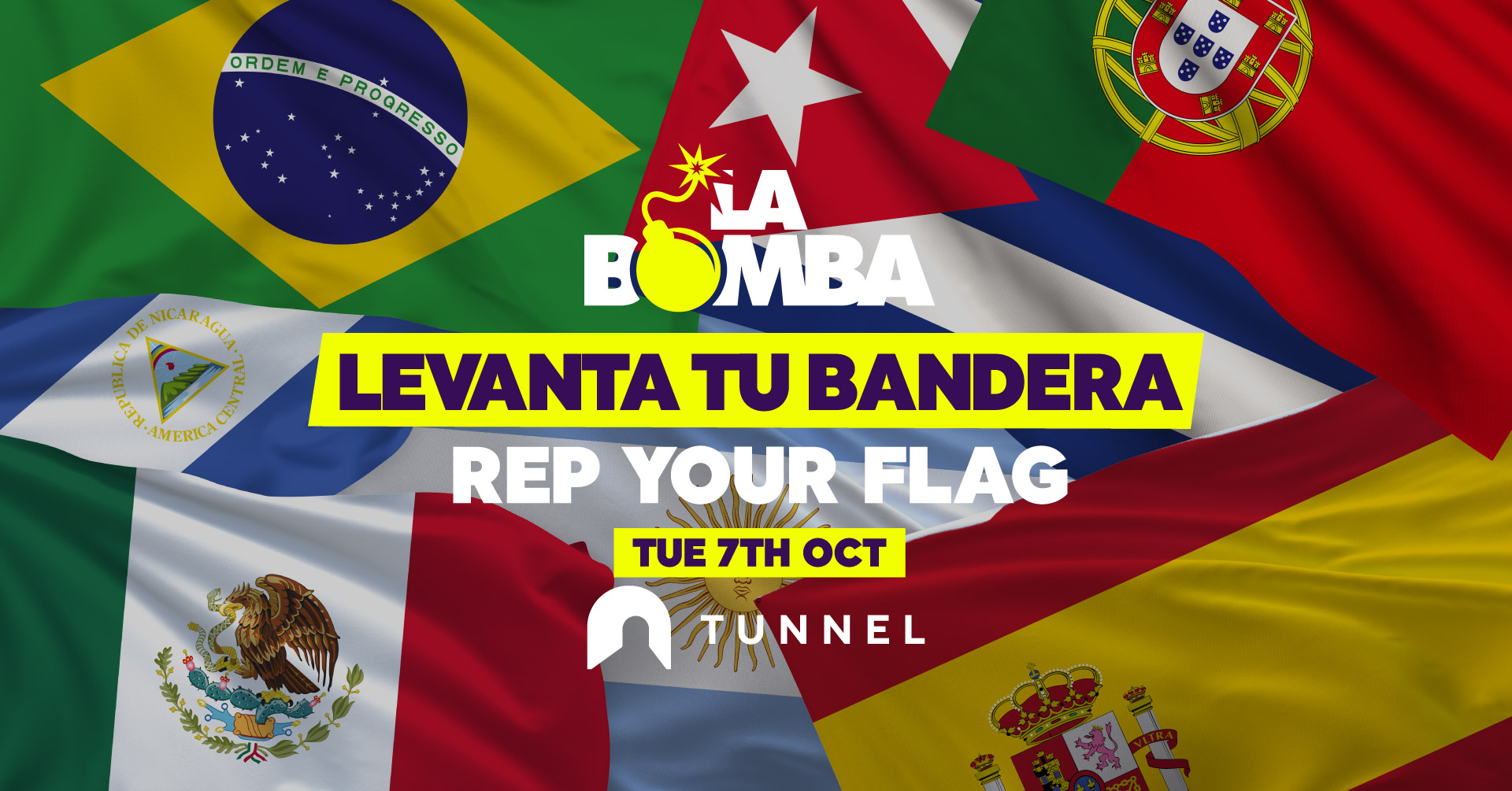 Who’s ready for our La Bomba Rep your Flag party at Tunnel on Tuesday 7th October 🚩💣