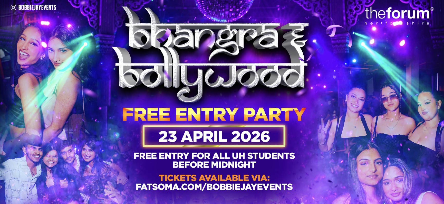 Hertfordshire’s ONLY night dedicated to the vibrant beats of Bhangra & Bollywood.... and itĀ isĀ FREE for UH Students! Tickets Are Limited & Will Sell Out !