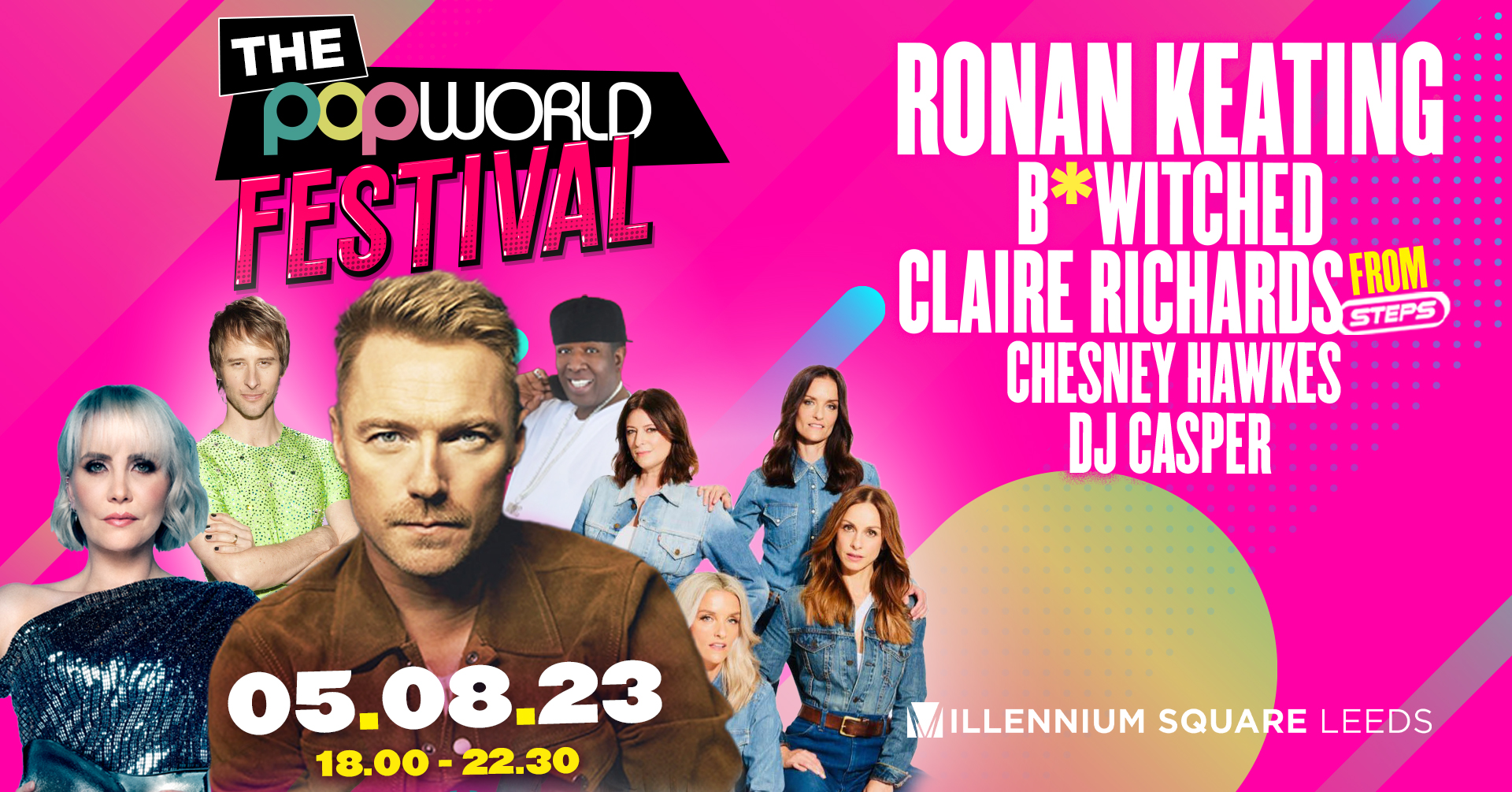 Expect all the things you love about Popworld along with a MASSIVE line up with the likes of Ronan Keating, Claire from Steps, B*Witched and more...