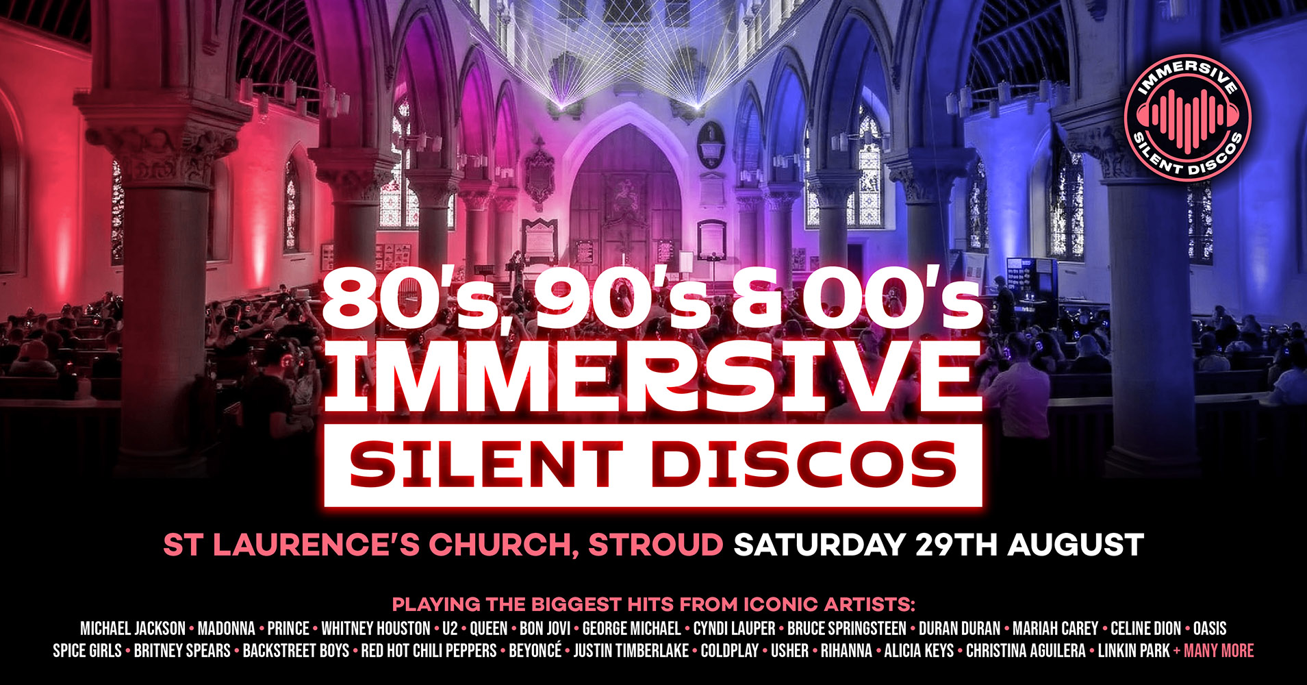 🎧 Immersive Silent Discos Presents: 80's, 90's & 00's at St Laurence, Stroud ⛪