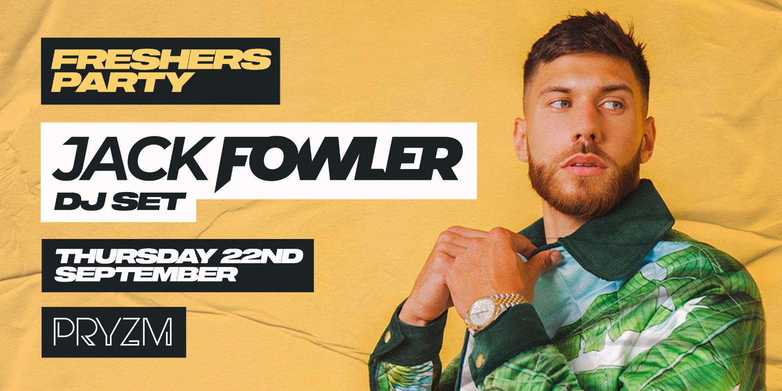 JOIN US FOR A HUGE FRESHERS PARTY AT PRYZM WITH THE ONE & ONLY JACK FOWLER! THIS WILL BE JACK’S ONLY FRESHERS APPEARANCE IN BIRMINGHAM AND HE WILL BE BRINGING THE PARTY TO LIFE IN WAYS ONLY HE NOWS HOW!