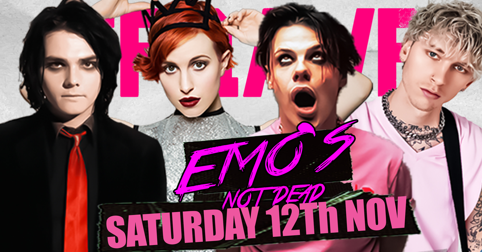 My Chemical Romance / Machine Gun Kelly / Paramore / Yungblud / Panic! at the Disco / Mod Sun / Avril Lavigne / Pale Waves / The Used / Ian Diorr / The 1975 / Lil Lotus / 30 Seconds to Mars/ Juice Wrld / Taking Back Sunday / Post Malone / Bring Me The Horizon / Lil Peep / All American Rejects / Olivia Rodrigo / Linkin Park / Willow / Papa Roach / Halsey and LOADS MORE!