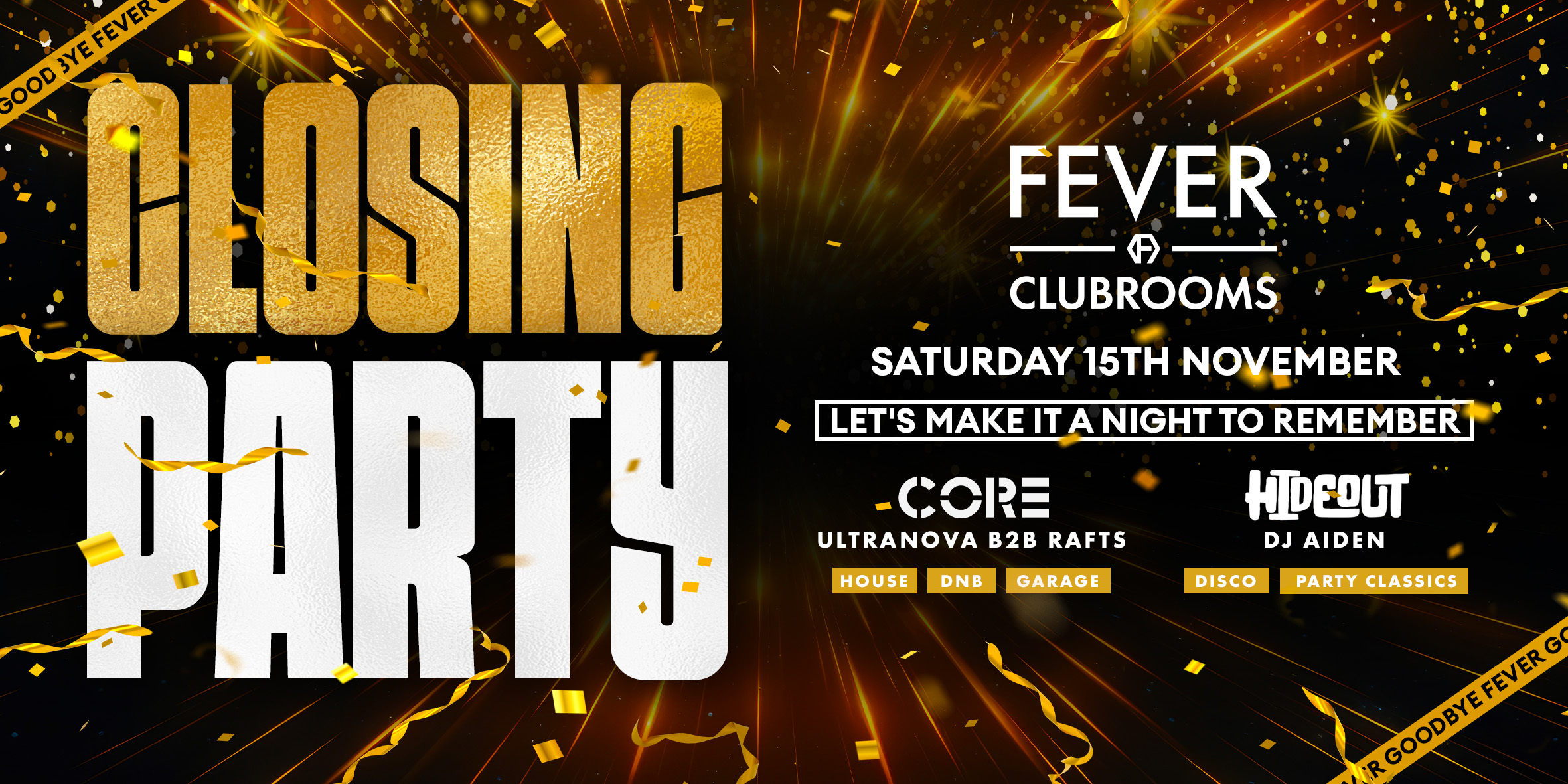 After years of unforgettable nights, pulsing beats, and wild memories, it's time to say goodbye in style. Join us for one last electrifying celebration as we shut the doors with a bang!
