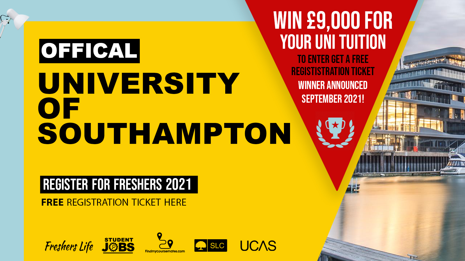 This FREE registration ticket is for all applicants to the University of Southampton for Southampton Freshers Week 2021. We will be providing all the information you need for those who register for freshers by getting a free ticket from this event. This will include the University of Southampton University Week Passes, Discounts, Jobs, Groups, Social Chats, Events and more!