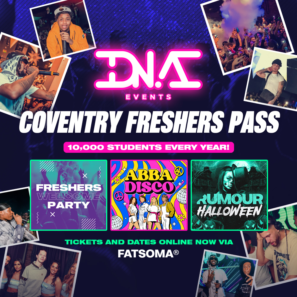 Join thousands of new students as you gain access to some of the biggest events and best venues in Coventry for freshers Including a bonus halloween event that sells out every year. 3 Huge Events, 3 venues , 1 ticket…. Grab your pass early as once they sell out there will be no further allocation!