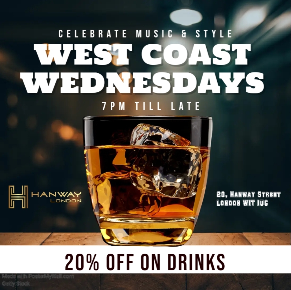 If you love Snoop wanna get down to Dre then West coast Wednesdays is gonna hit the spot! From 7pm tilll are come and vibe with some badass tunes from 90s to current bangers nod your head to this!