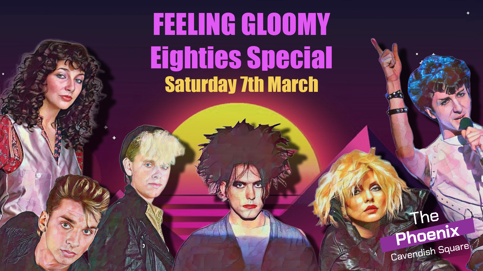 Expect sad songs from the likes of Joy Division, The Smiths, The Clash, Pet Shop Boys, Depeche Mode, The Cure, David Bowie, Echo & The Bunnymen, New Order, The Cult, Kate Bush, Blondie, Human League, Soft Cell, Siouxsie & The Banshees, Sisters of Mercy and more