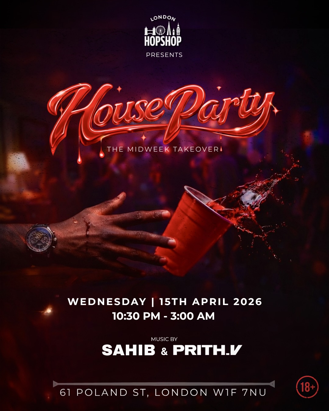 We’re bringing full Spring Break house party energy to Soho red cups, packed dancefloor, and zero excuses to stay in.