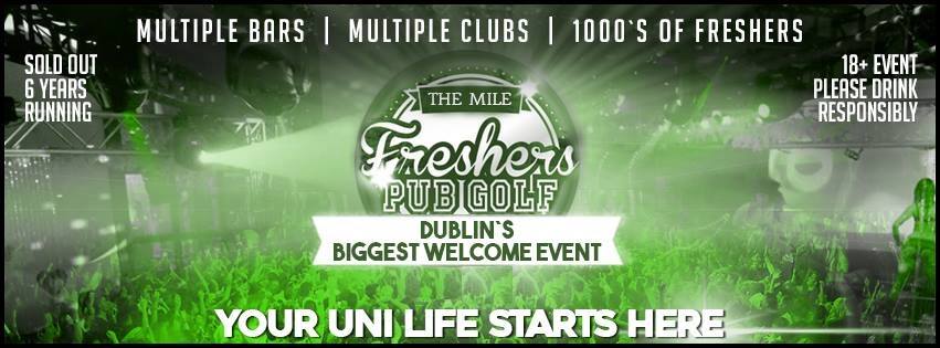 Officially the BIGGEST freshers Pub Crawl event in the UK, Scotland and Ireland! The Mile Freshers Pub Golf has become Dublin Freshers tradition and this year we are planning our biggest event yet! This is one of the most memorable nights of your Uni Life & the Biggest event of Dublin Freshers!