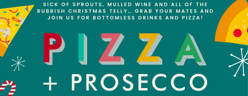Choose a pizza, and enjoy unlimited drinks* for two hours, YES TWO HOURS!