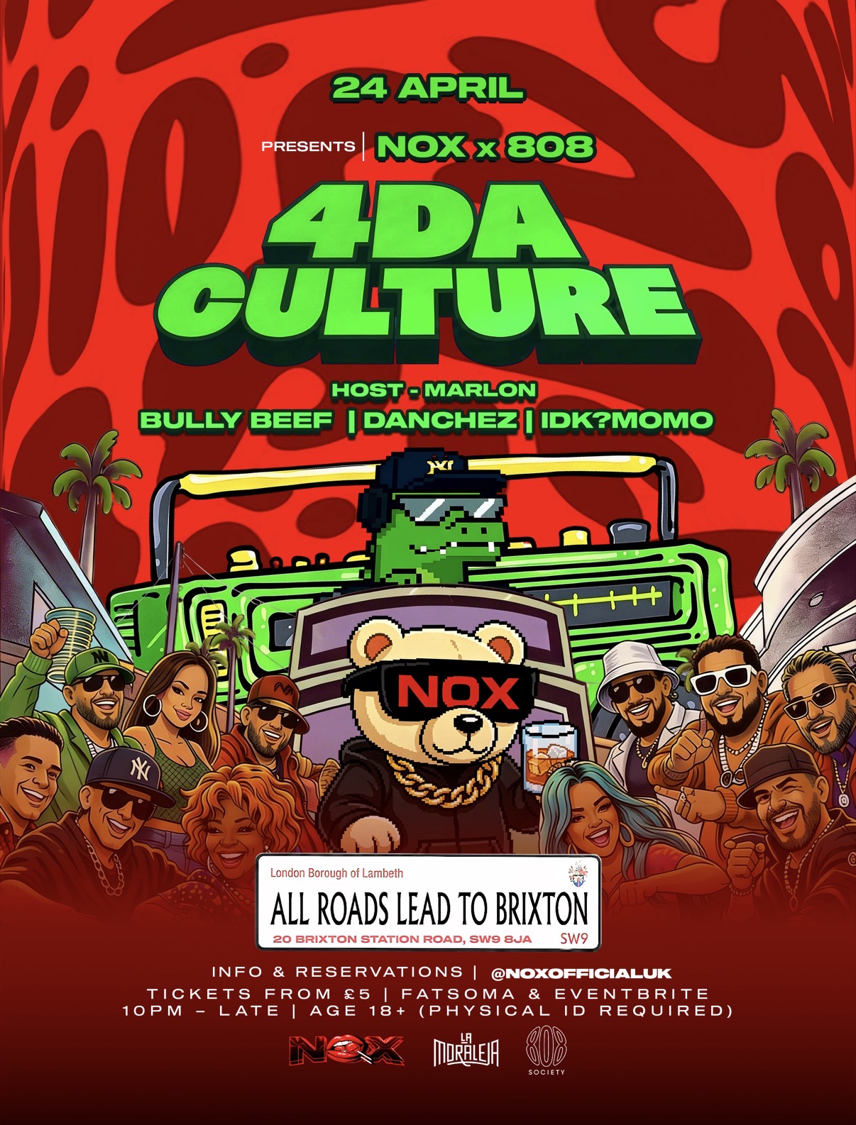 On April 24th, NOX links up with 808 to bring you a high-energy Latin & urban experience in the heart of Brixton. Expect a packed dancefloor, heavy vibes, and a crowd that actually came to turn up.