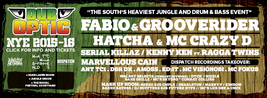 Now in our 9th year, with over 120 events to date, our solid reputation of TOP NOTCH dancing music see's this years NYE party invite 3 big brands, JUNGLIST NETWORK, HATCHA & FRIENDS and DISPATCH RECORDINGS to help us celebrate the south's HEAVIEST Jungle and Drum & Bass event.