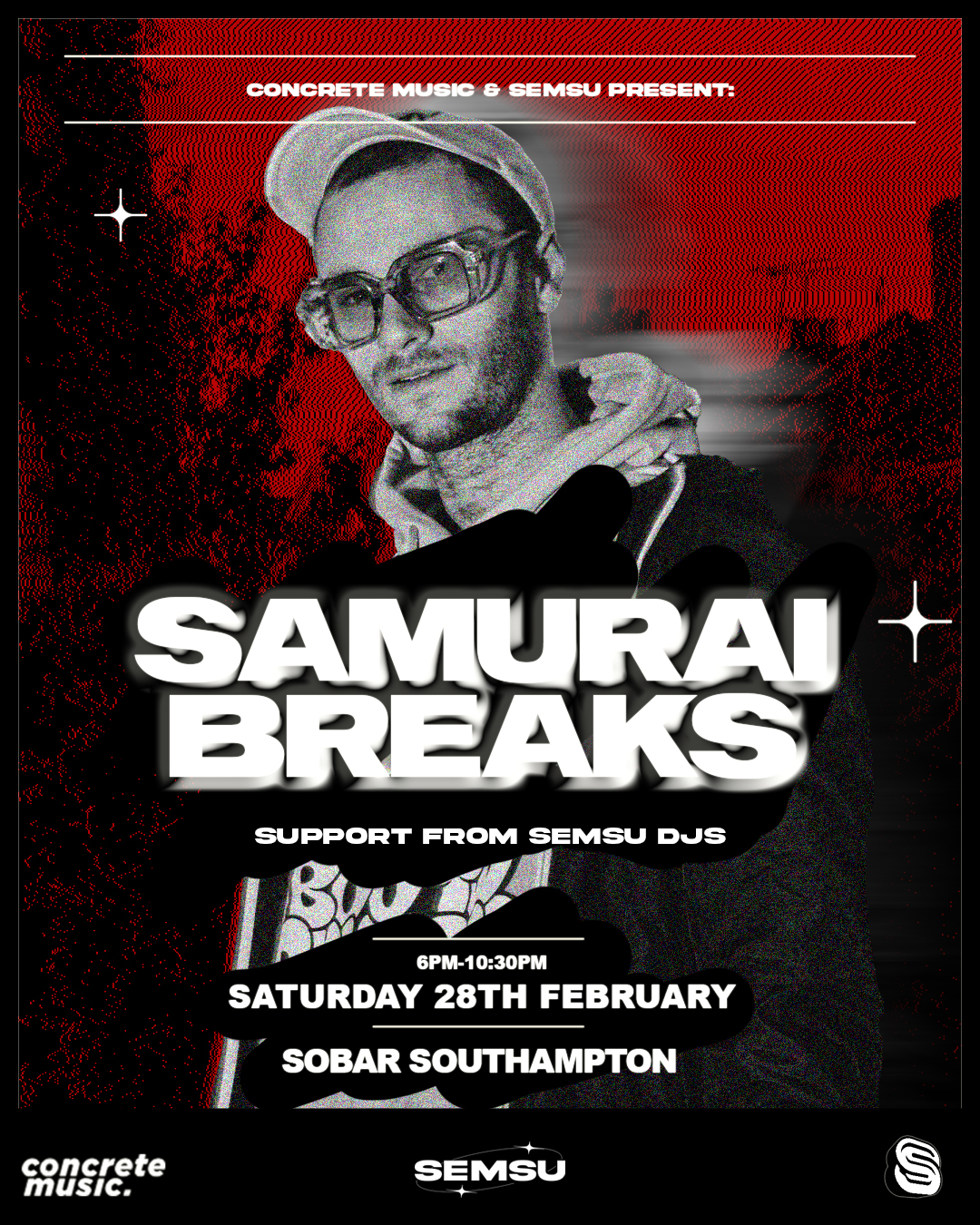 Super Sonic Booty Bangers Bossman, Samurai Breaks makes his Sobar debut on February 28th for Concrete Music & SEMSU.