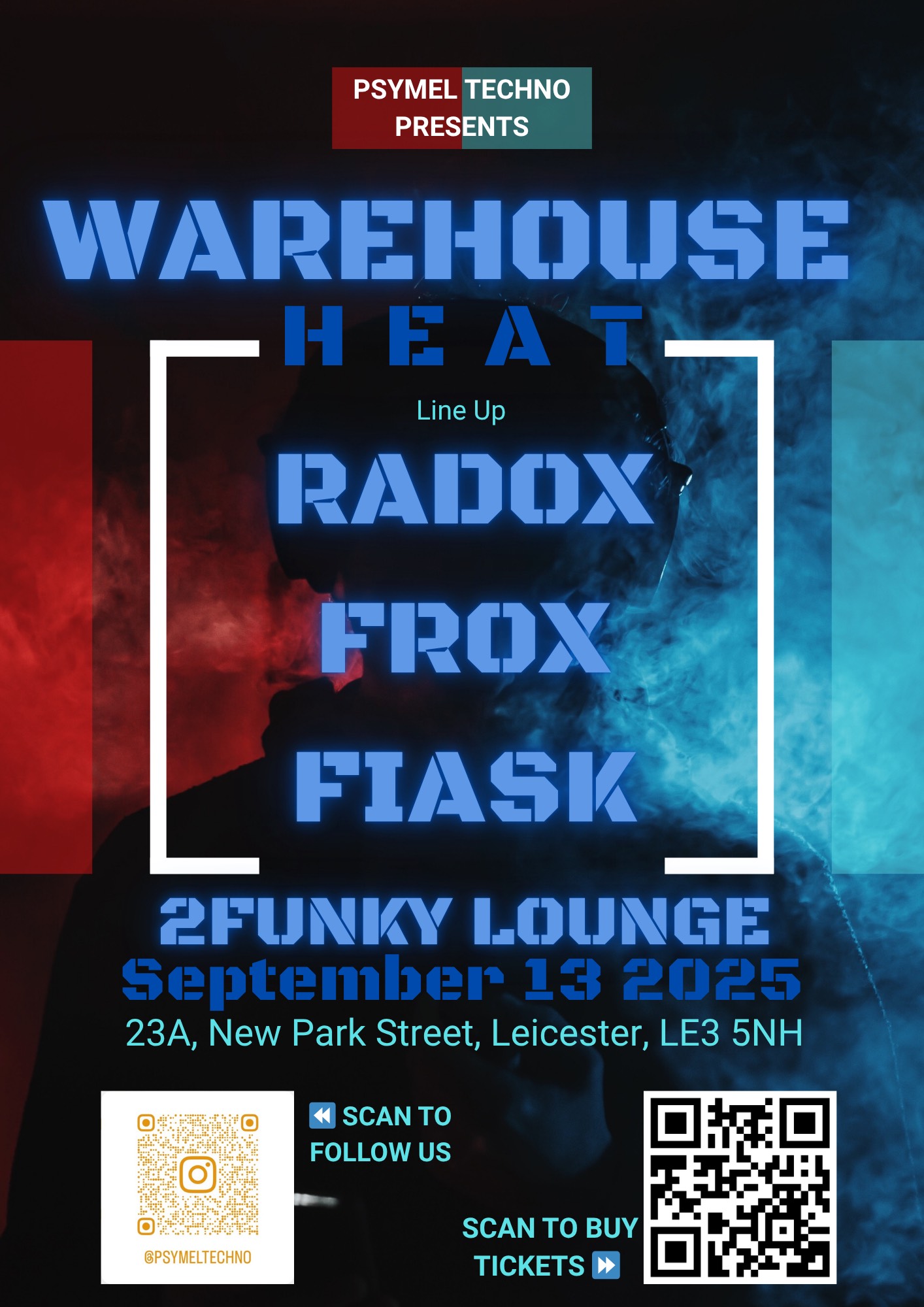 Get ready for a night of pure energy as Warehouse Heat brings the energy straight to the heart of Leicester. We’re transforming 2Funky Lounge into a blasting rave zone with heavy sounds, funky lighting, and high energy from start to finish.