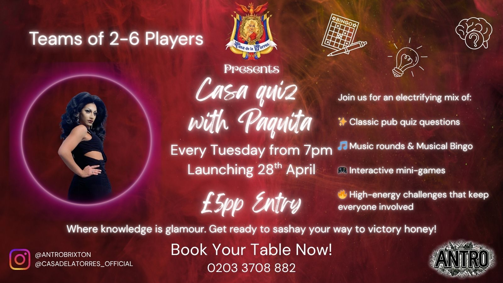 Every Tuesday from 7:00pm at Antro Bar £5.00 entry per person