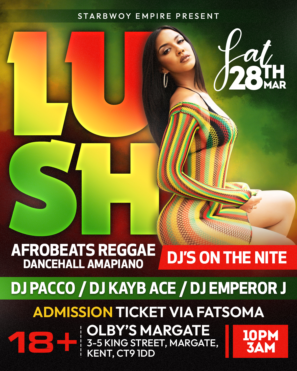 Get ready to FLING YUH SHULDA & BRUK OFF YUH BACK. NIGHT FULL OF ENERGY AND EXPERIENCE. Afrobeats, Amapiano Reggae and Dancehall at our favourite Thanet BIGGEST venue Olby’s Margate.