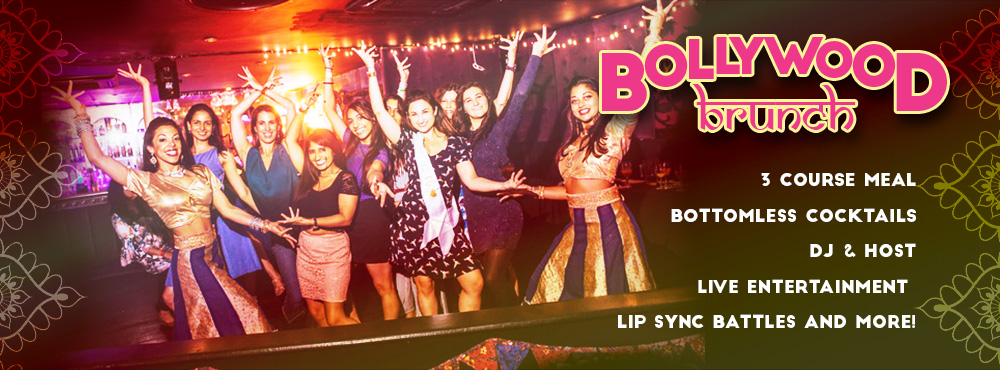 Each ticket includes a Bottomless cocktail hour from 12 pm, a 3-course Bollywood meal from Rola Wala.