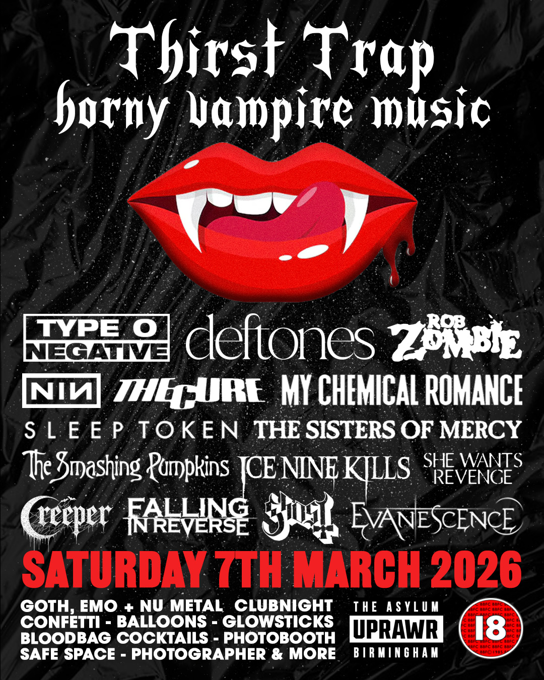 Calling all goths, emos, nu metal & industrial metal fans and baddies. On the 7th March we are bringing our first ever night dedicated entirely to the horniest vampire music of all time. Imagine if Nosferatu, Morticia Addams, The Crow and Elvira had a Spotify jam going - you get the picture...Â
