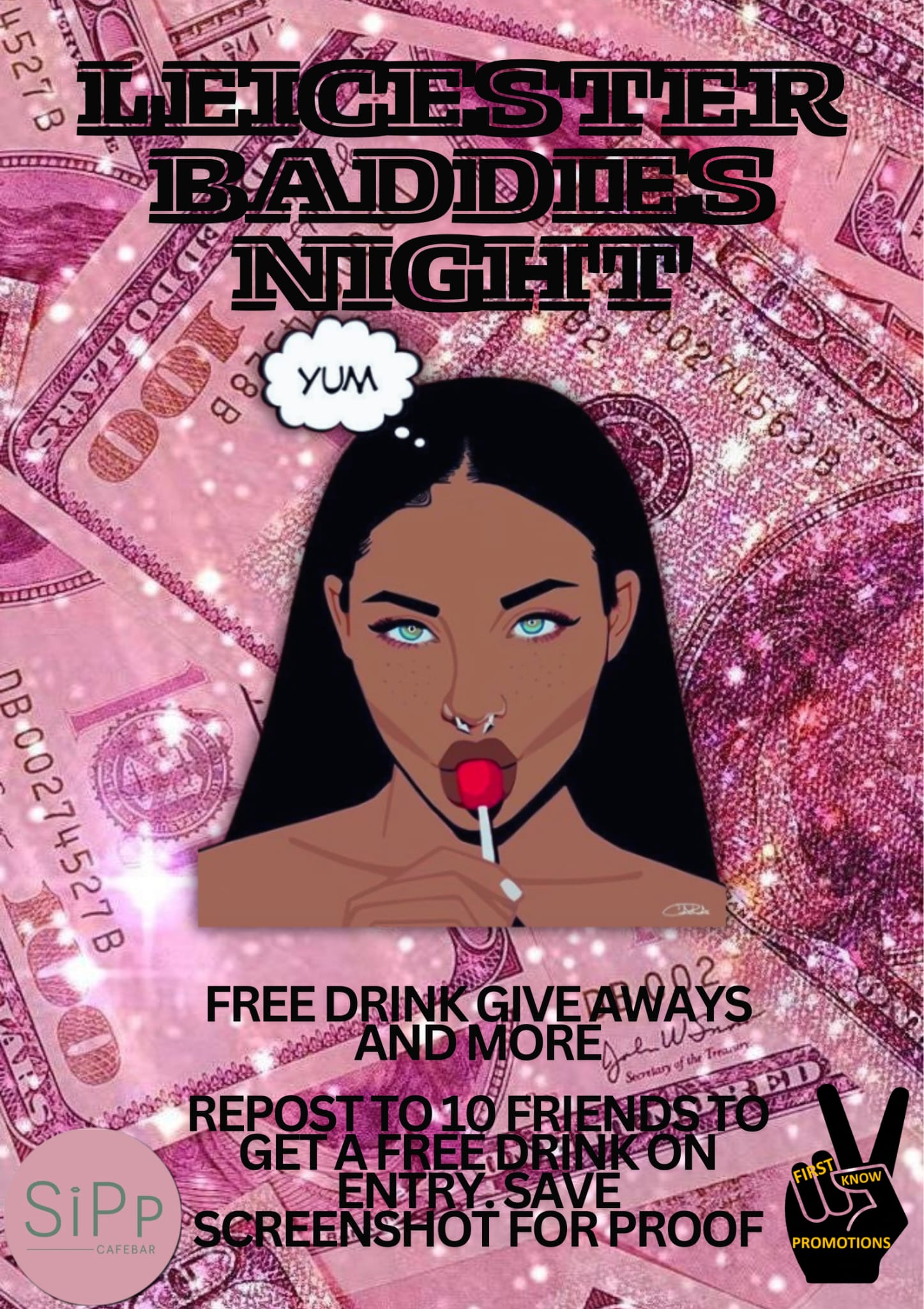 FOLLOW FIRSTTOKNOWPROMOTIONS AND SEND TO 10 FRIENDS TO RECEIVE ANOTHER FREE DRINK ON THE NIGHT!