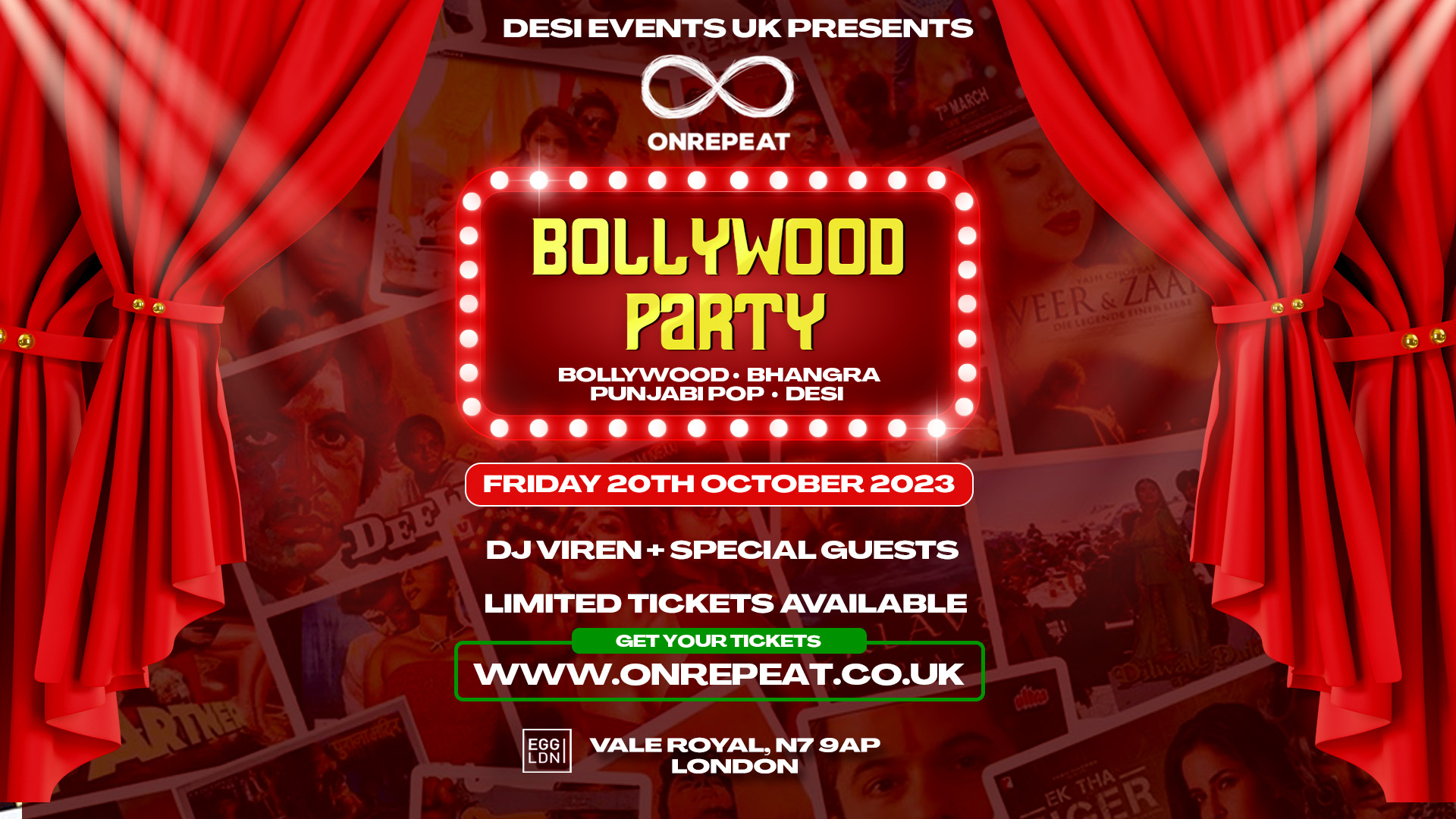OnRepeat Experiences x Desi Events UK is excited and happy to present you THE BOLLYWOOD PARTY β€οΈ