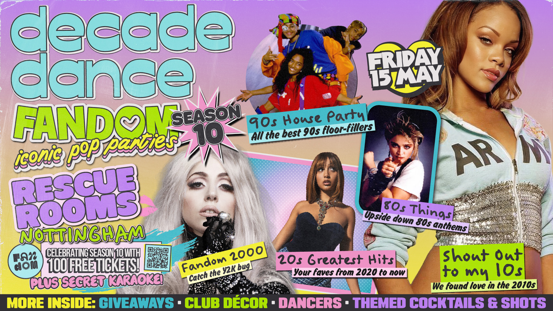 Fandom: Decade Dance takes you on a pop journey through the ages, from 80s Top of the Pops hits, to 20s Spotify bangers! Set times will be released closer to the time, and let us know what you want to hear with requests when you grab your ticket.