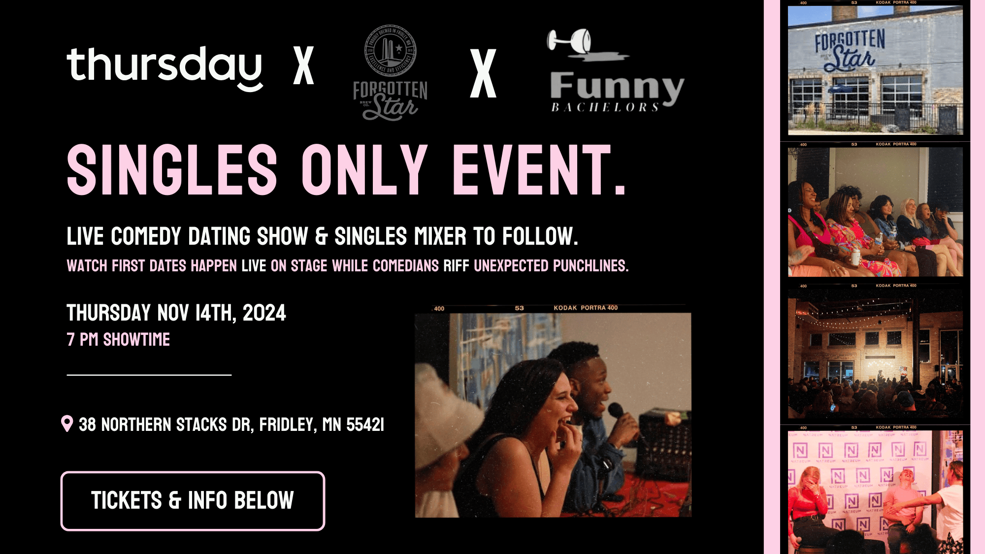 Join us for this LIVE Comedy Dating Show, "Funny Bachelors" x Thursday Singles Event.