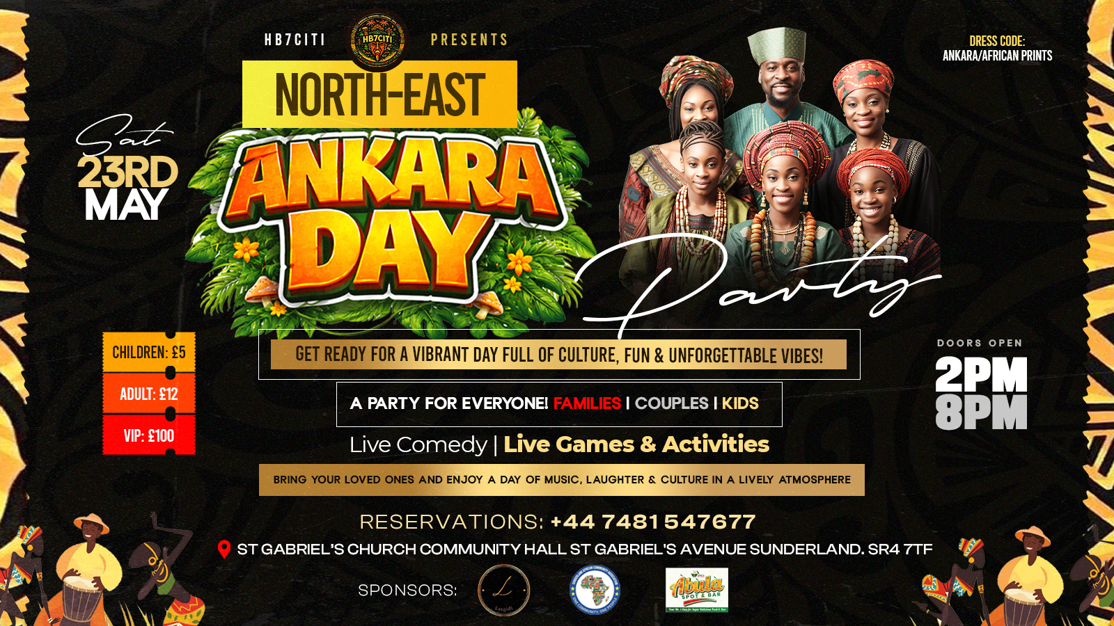 A party for families, couples & kids — bring your loved ones and enjoy the best African cultural experience in Sunderland.