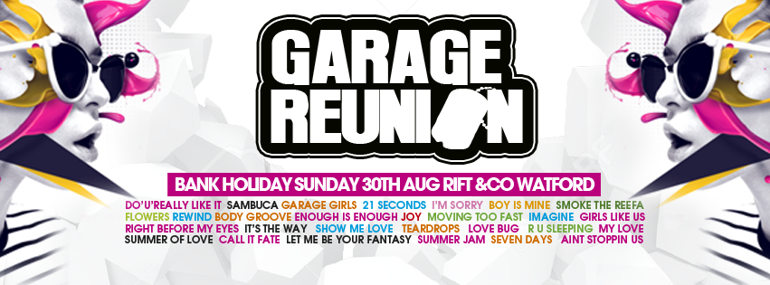 GARAGE REUNION!!!!!!!! Bank Holiday Sunday 30th August Rift & CO Watford