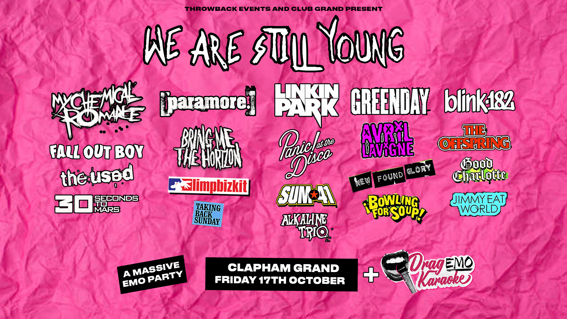 WE ARE STILL YOUNG CLUB RETURNS WITH DJS & DRAG EMO KARAOKE ON OUR MAIN STAGE FOR THE ULTIMATE EMO PARTY! 🎸
