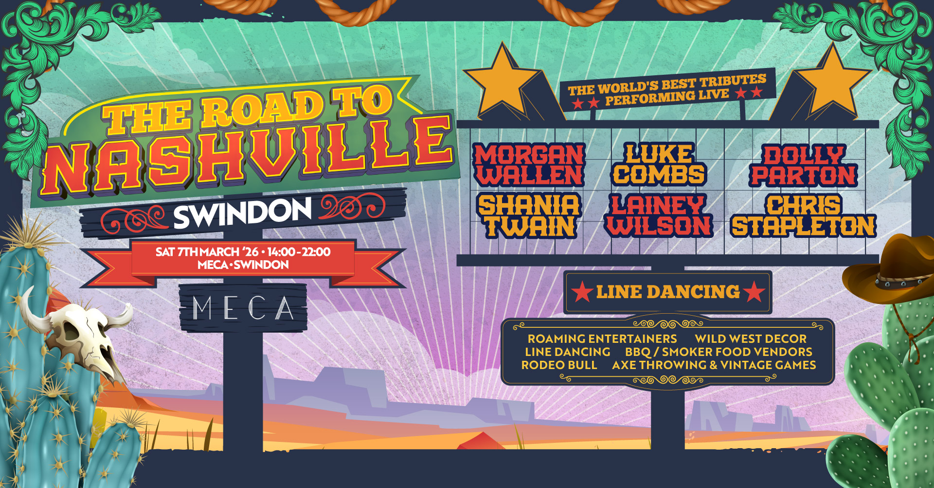 Get ready for a boot-stompin', hat-tippin' celebration of country music as The Road to Nashville rolls into Swindon! Experience the world's best tribute acts performing live, bringing the heart of Music City straight to MECA.🤩