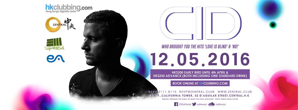 Grammy Award-winning producer CID will be making his Asia debut in Hong Kong this May at Zentral! Having won a Grammy for “Best Remixed Recording” in 2014, this New Yorker DJ, producer and engineer will hit Hong Kong hard with his dance music for one night only.