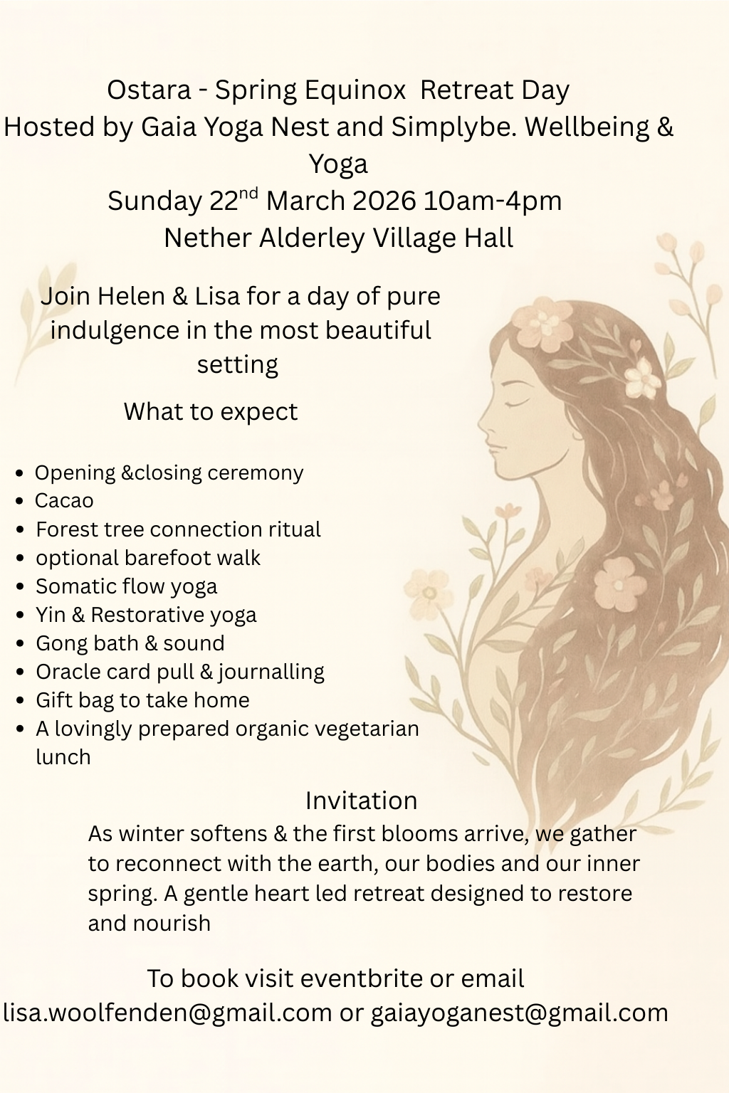 To book head to my website Gaiayoganest.co.uk visit the Book Here page and scroll down for all our offerings.
