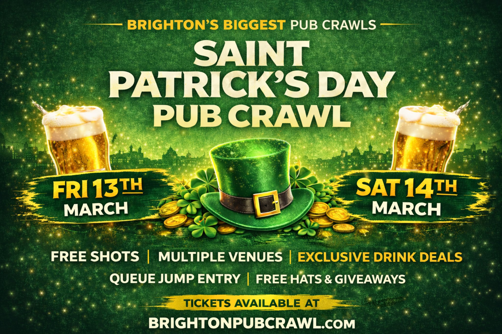 Secure yours now and join Brighton’s biggest St Patrick’s weekend party. ☘️