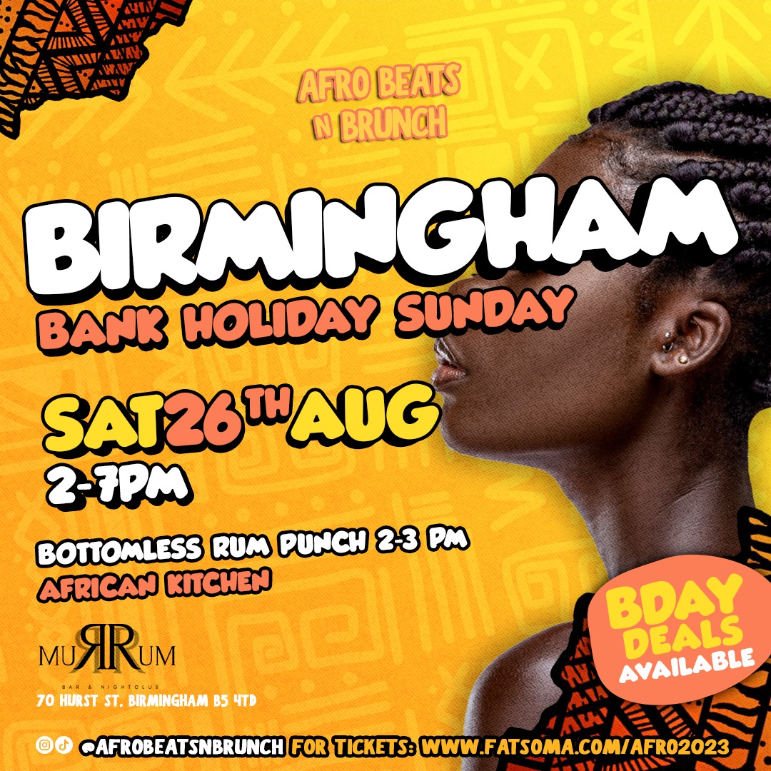 AFROBEATS N BRUNCH BANK HOLIDAY SPECIAL AT RUM RUM BIRMINGHAM! 🔥🔥🔥🔥🔥🔥🔥🔥🔥🔥