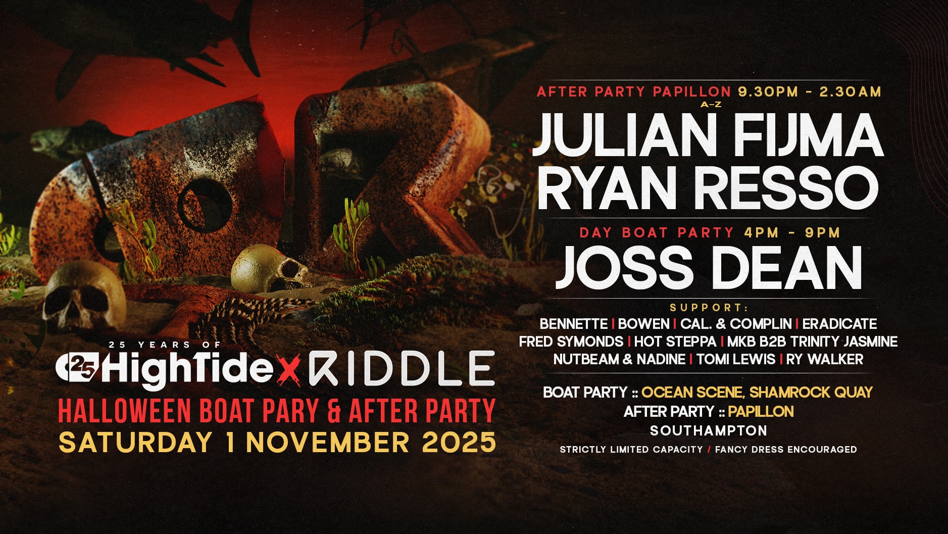 High Tide continues its 25th birthday celebrations with our good friends Riddle, serving up a double dose of Halloween mischief, one on the waves, and one on dry land.