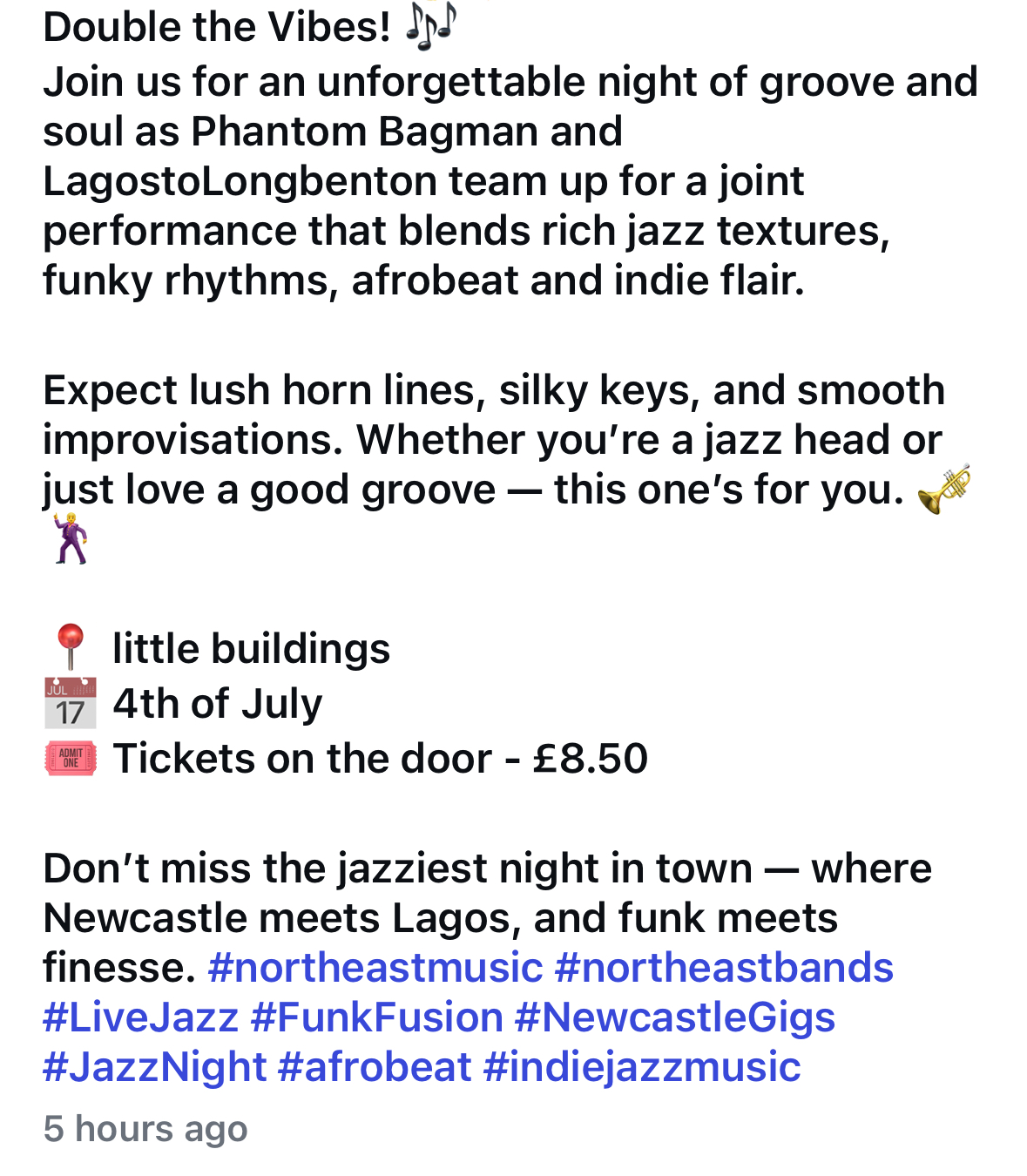Phantom Bagman// Lagos to Longbenton Off Sale