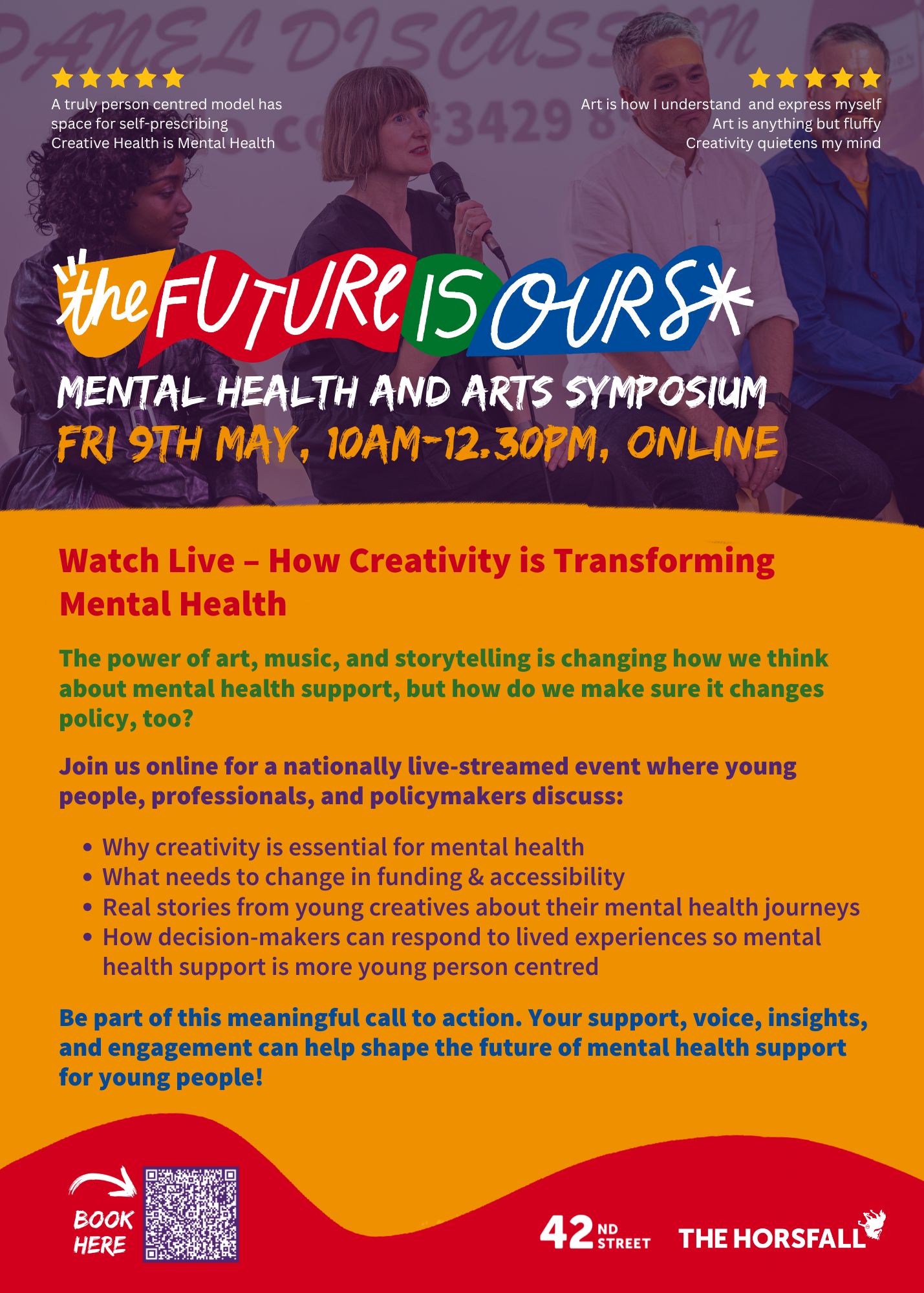 Be part of the conversation and change. Join us as The Future Is Ours Mental Health and Arts Symposium Online, Friday 9th May, 10.00am-12.30pm.