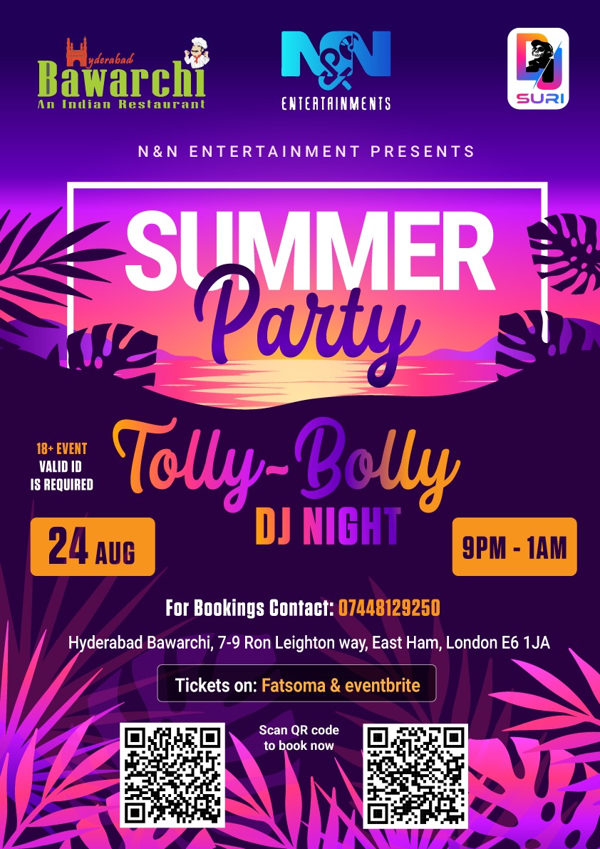 Come join us for a sizzling Summer Party at Hyderabadi Bawarchi Indian Restaurant! Get ready for a night filled with rocking entertainment by DJ SURI to dance the night away with latest Tollywood and Bollywood tracks along with delicious food, refreshing drinks, and great company. Let's celebrate the summer season together in style.