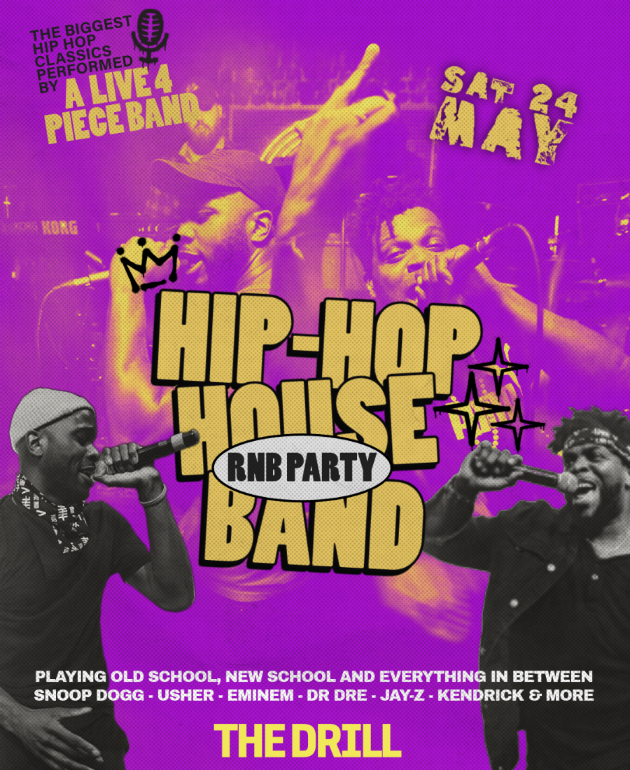 The Hip Hop House Band has been smashing live hip hop gigs with high energy since 2017. Expect the biggest tunes from your favourite hip hop, rnb and rap artists as they play old school, new school and everything in between.