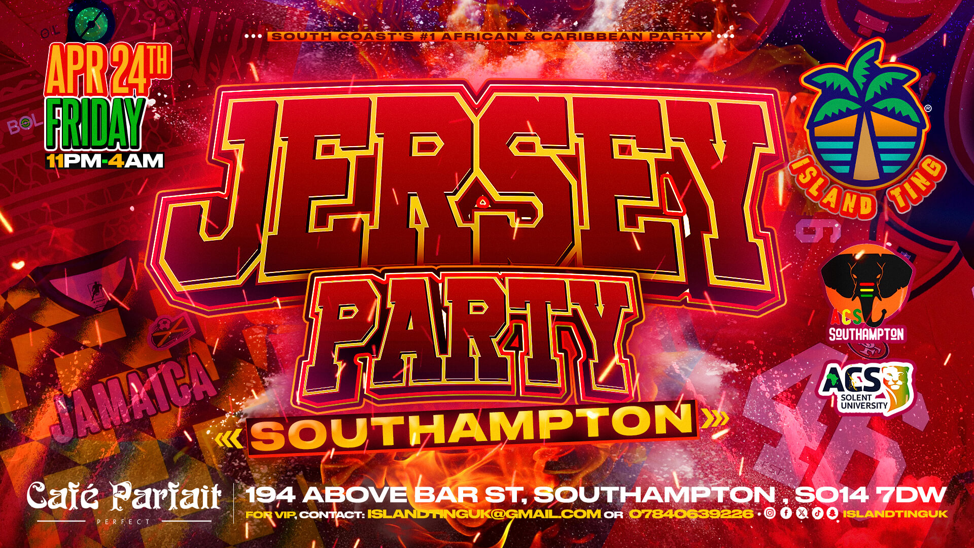 The South Coast's #1 African & Caribbean Party brand returns to Southamptonย for our first ever Jersey Party ๐ฅ If you attended the last events (Jeleel & Rep Your Flag)ย then you already know how this will go down!๐ด Come Rep your Country or Team !
