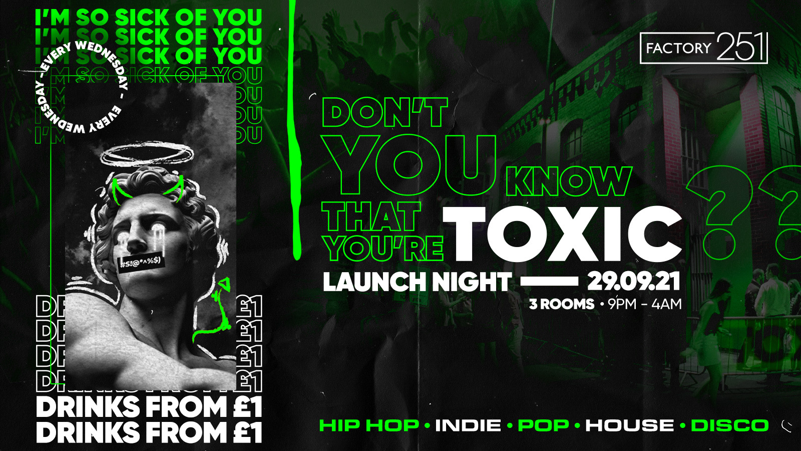 FREE ENTRY FOR THE FIRST 500 PEOPLE + £1 DRINKS