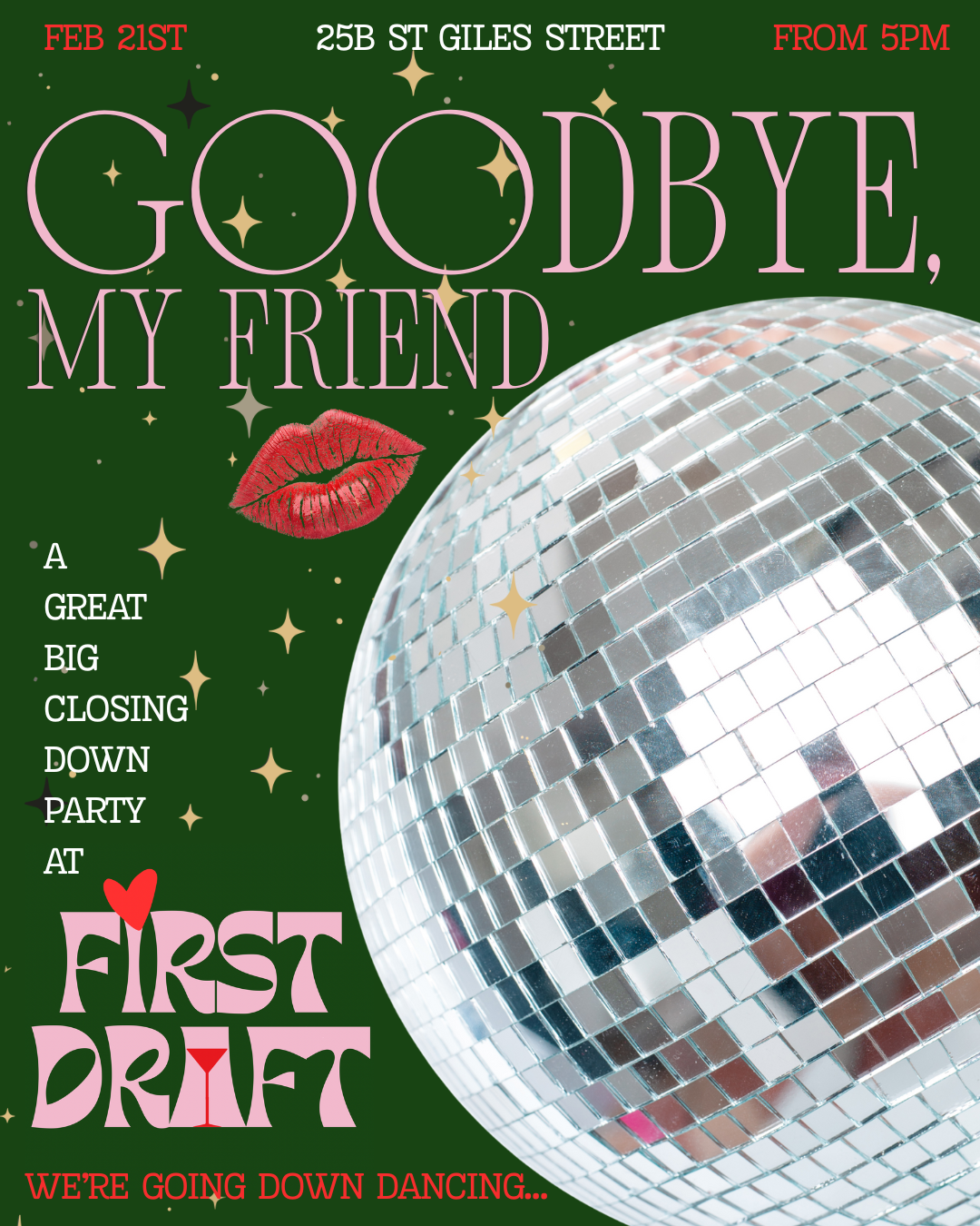 First Draft is closing its doors. But we're going down dancing! Come join us for the closing down party to end all closing down parties. Expect fabulous drinks, fabulous people, and a good dose of rowdiness. 5pm until late.