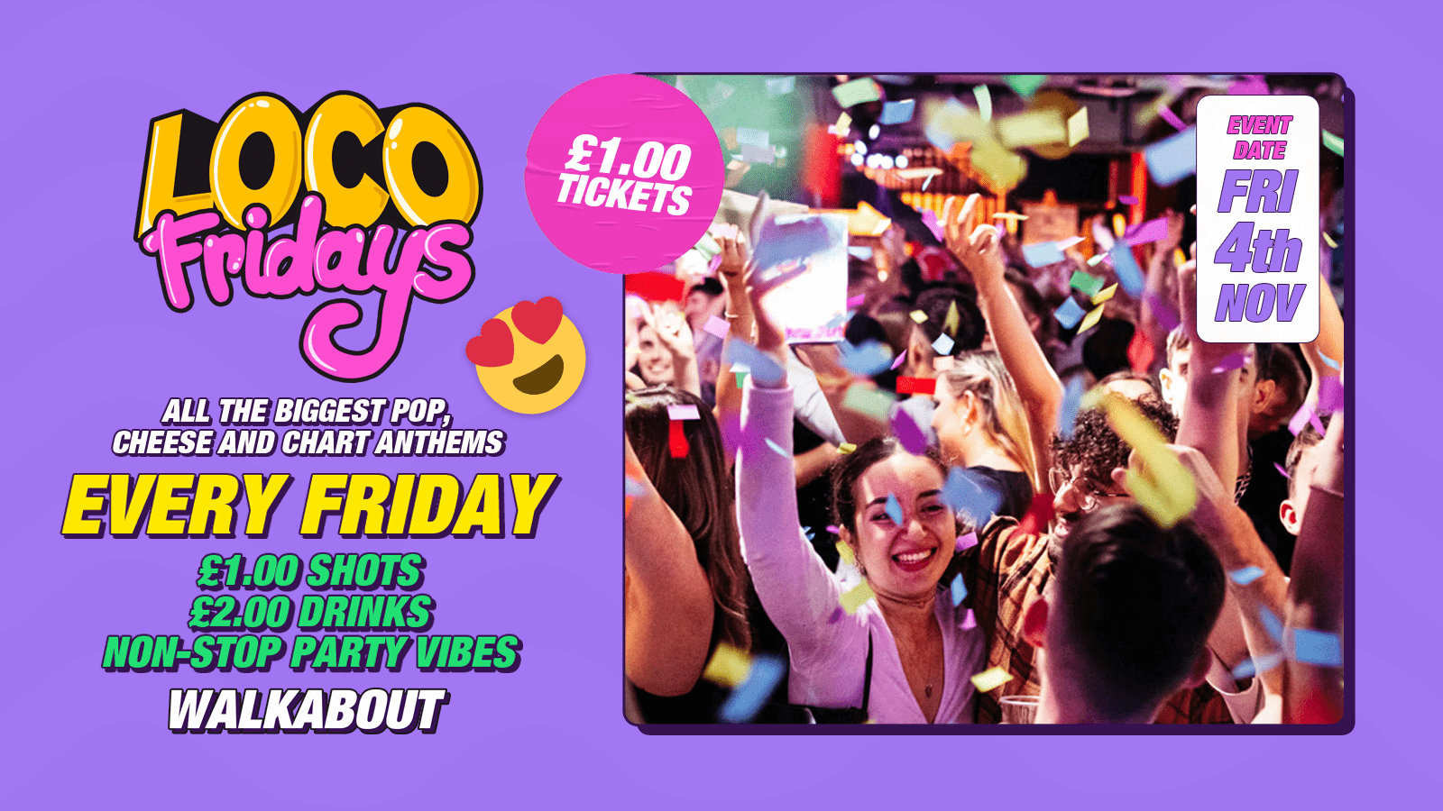 There’s nothing quite like that Friday feeling so grab a drink and your dancing shoes, embrace the loco-life and welcome to LOCO FRIDAYS!