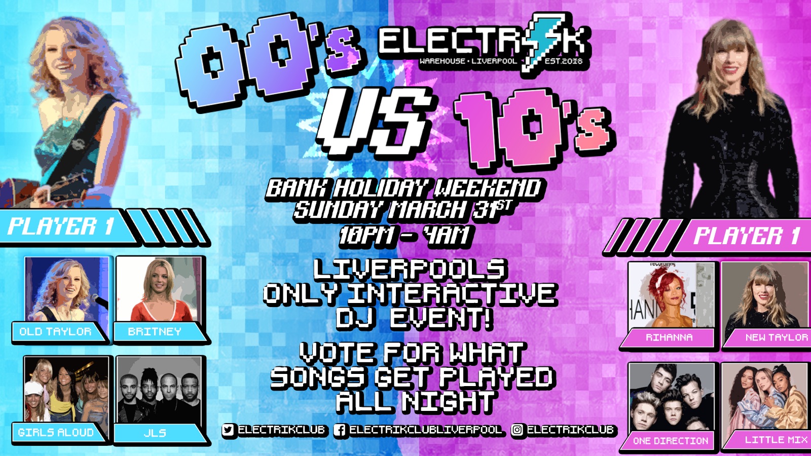 Take control of the night as the biggest acts of the last 2 decades go head to head, with you deciding the winner!