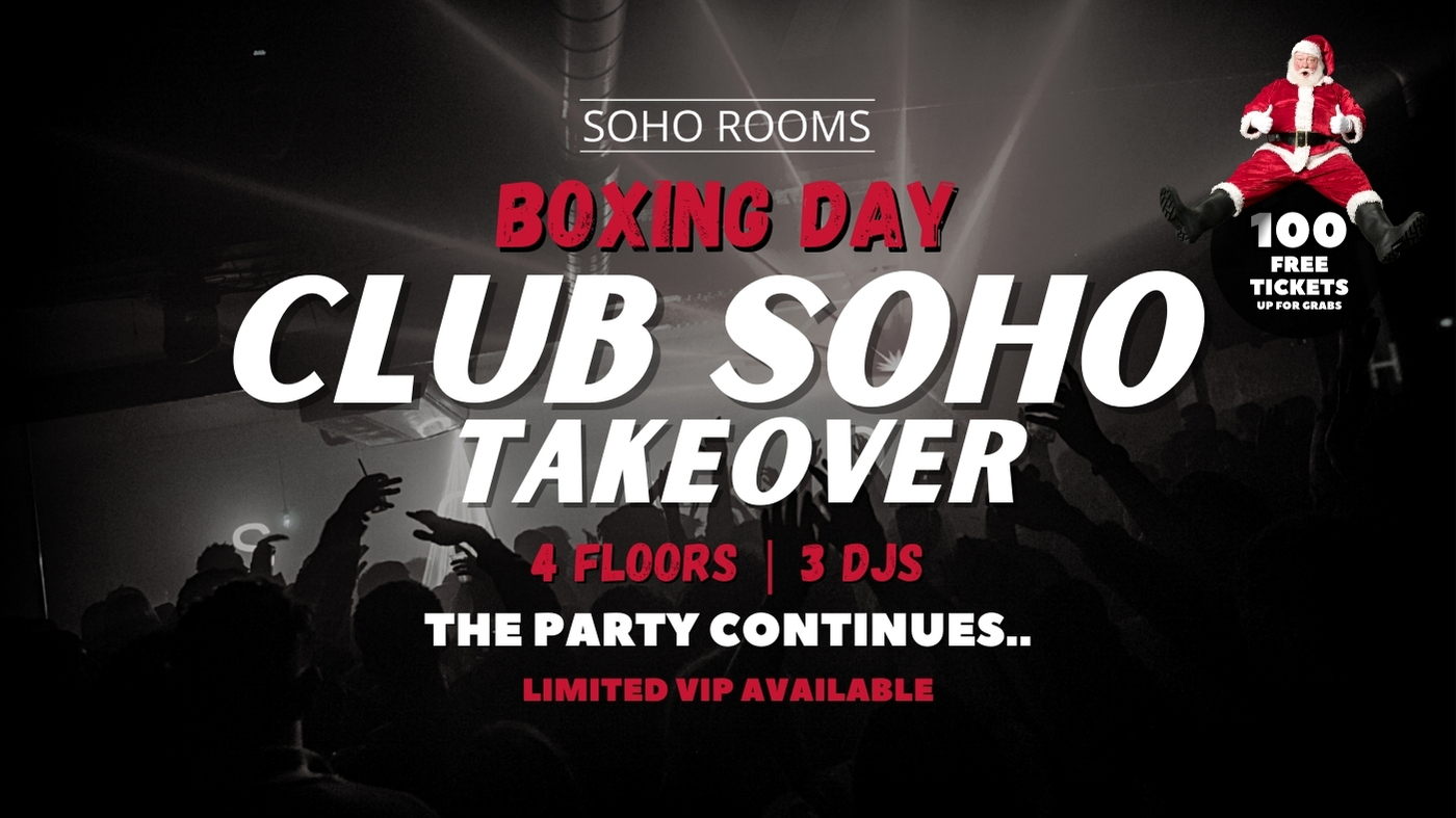 Grab your free tickets, spread the word, and let's make this Boxing Day an unforgettable celebration! CLUB SOHO HERE WE COME!