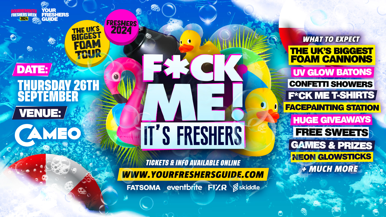 Originating at the 3000 capacity Coronet in London back in 2008, F*CK ME IT'S FRESHERS has been an annual tradition for new students starting University & returners for 15+ years running! And now it's YOUR TURN!