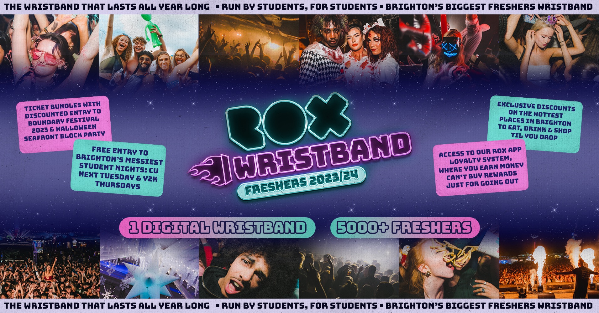 THE OFFICIAL 2023/24 BRIGHTON AND SUSSEX FRESHERS ROX WRISTBAND 🚀