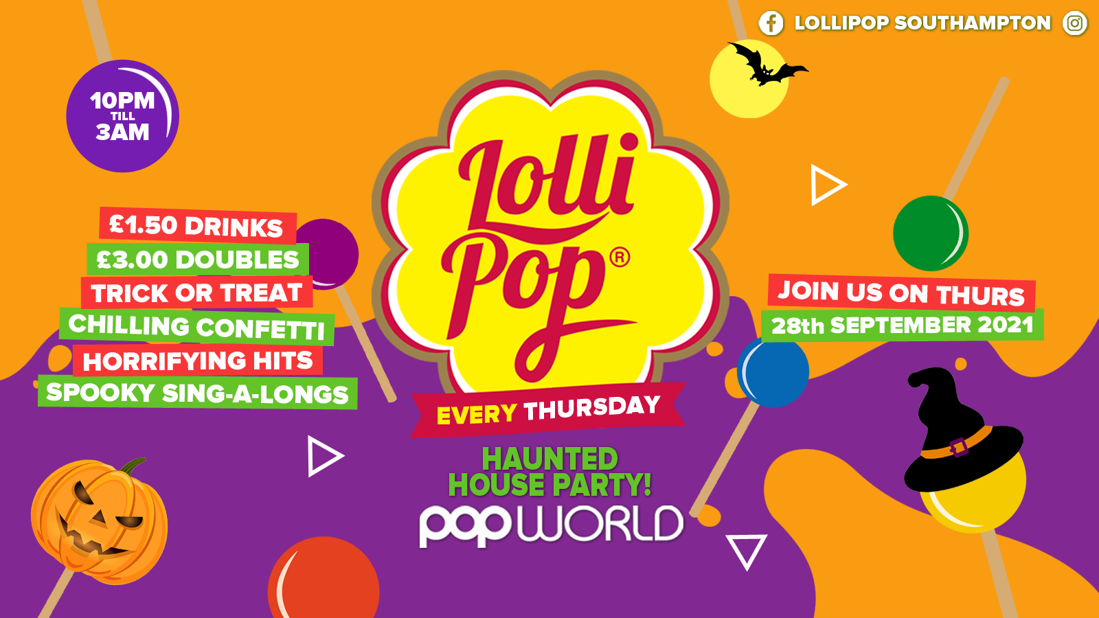 We will be taking over Popworld every Thursday night with £1.50 drinks, £3.00 doubles, pop anthems, sing-a-longs, the BIGGEST themes/entertainment and of course FREE Lollipops every week!
