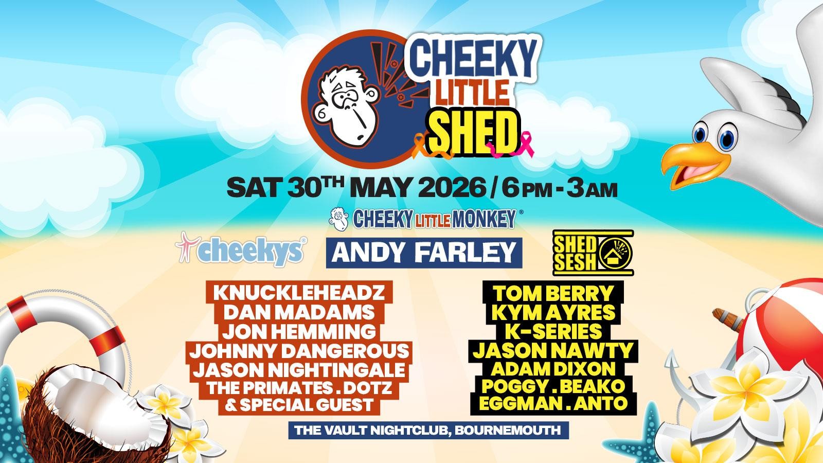 Saturday 30th May 2026 in The Vault Nightclub, Bournemouth - Shed Sessions return to the venue where Shed South was hatched in 2024 and Cheeky Little Monkey return to the building where it saw the 21st Century in all those years ago at the 1999 New Years Eve Party - in the then Bartonka.